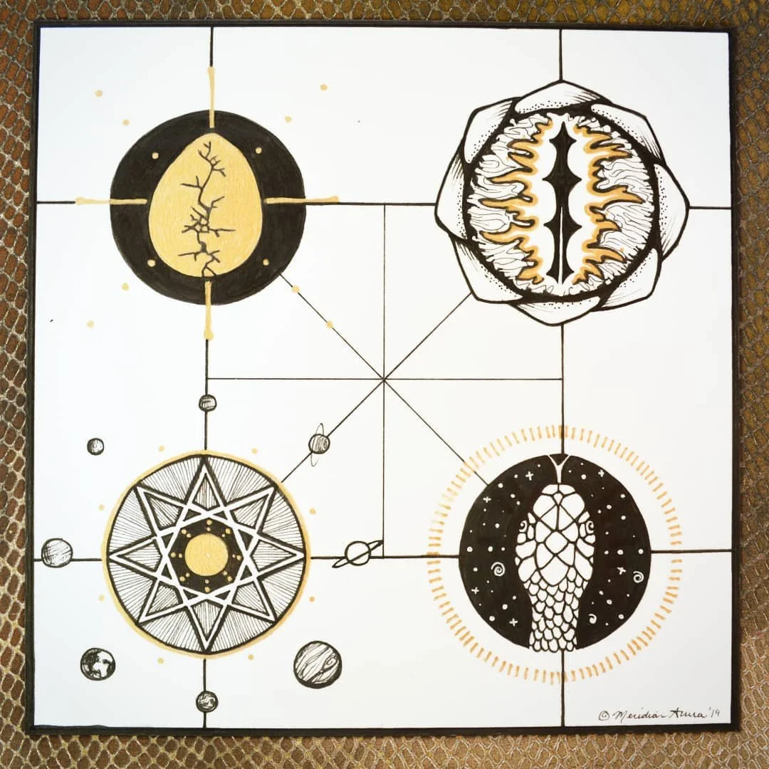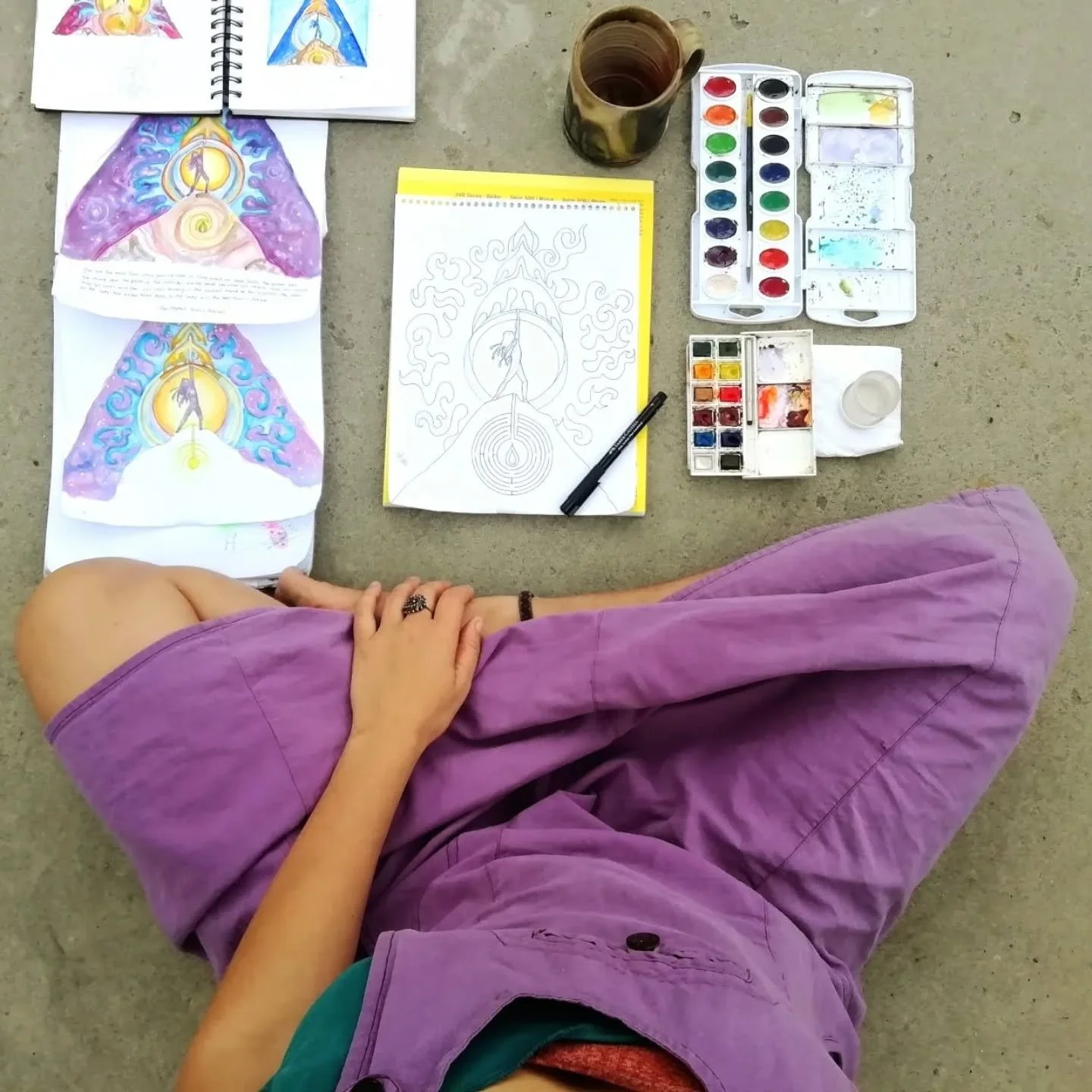 WANDERLING STUDIO is a studio that wanders… finding its home in forests & fields, by mountain streams & sandy shorelines, in one-room cabins, and on the floors of friends & fellow wanderers. It usually consists of a woven blanket on the ground, a cup of cacao, & a dream-seed vision from artist Mira Azura. This ever-shifting creative space is where myth, magic, medicine & dreams are illuminated through a visual language. Influenced by world mythology, indigenous art & plant medicine, Wanderling Studio weaves together seeds from the path of the Seeker in a tapestry celebrating the sacredness of Life.